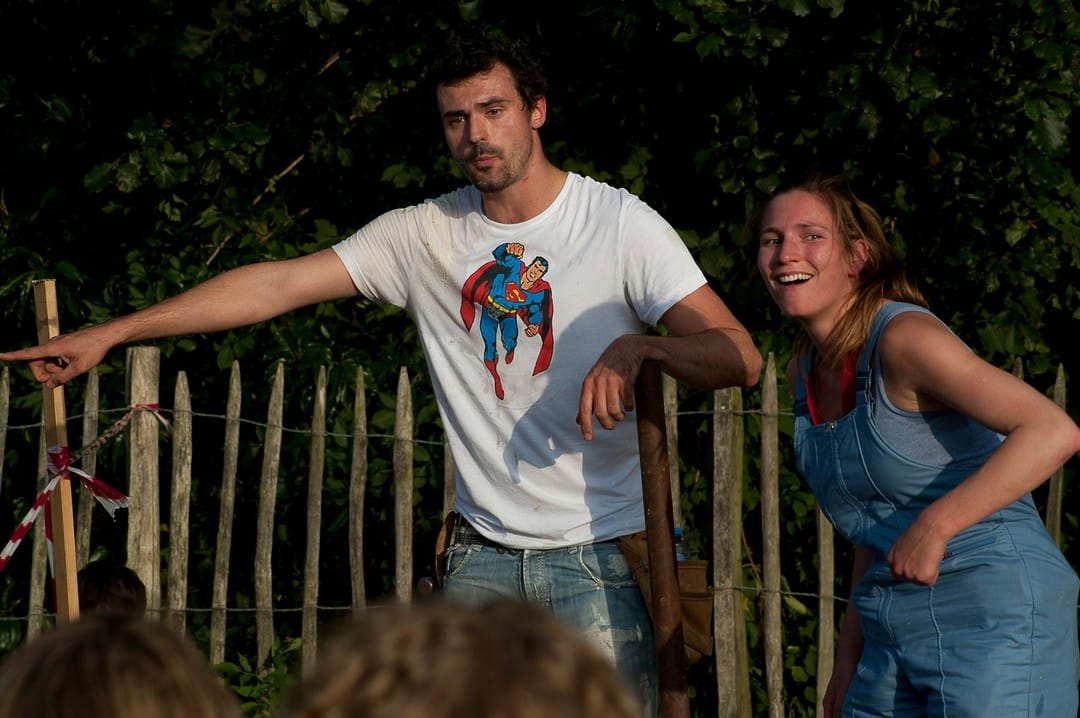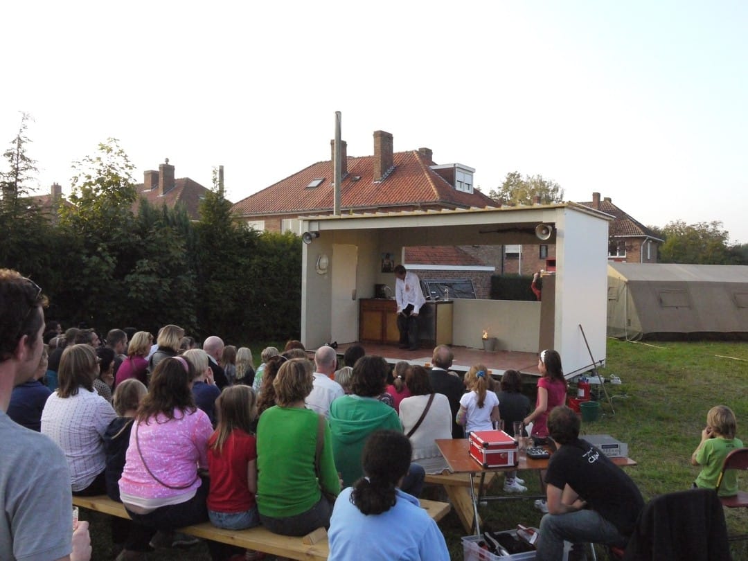 ‘Kunnen jullie een voorstelling maken die kan reizen in de wijken rond Brugge, die snel op– en afbouwbaar is zodat er eventueel twee keer per dag kan gespeeld worden? Wij zorgen voor een budget, productionele en op vraag inhoudelijke ondersteuning en als het zover is, voor speellocaties in woonbuurten, voor stoeltjes en publiek.’